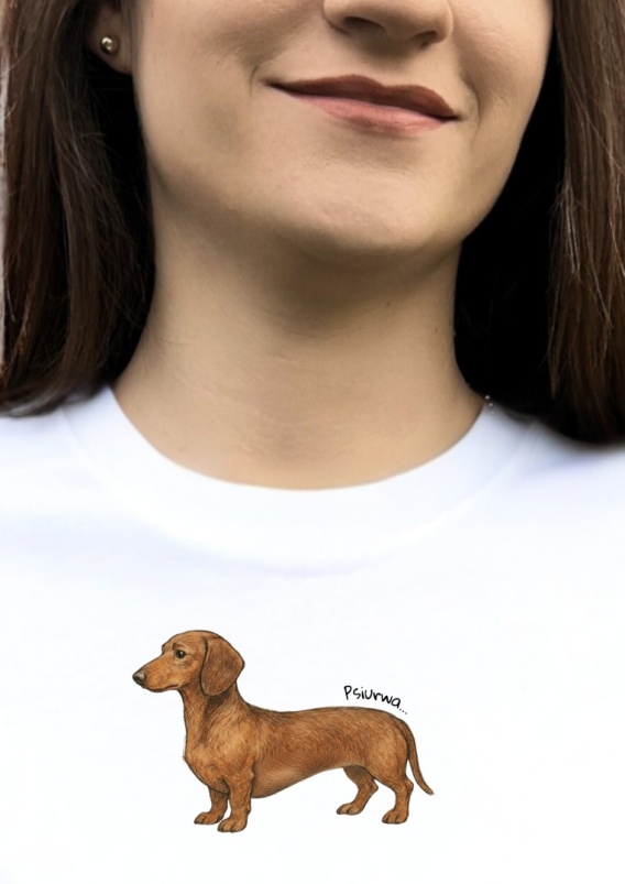 Koszulka „Psiurwa” z Jamnikiem – Minimalistyczny Humor dla Psiarzy!